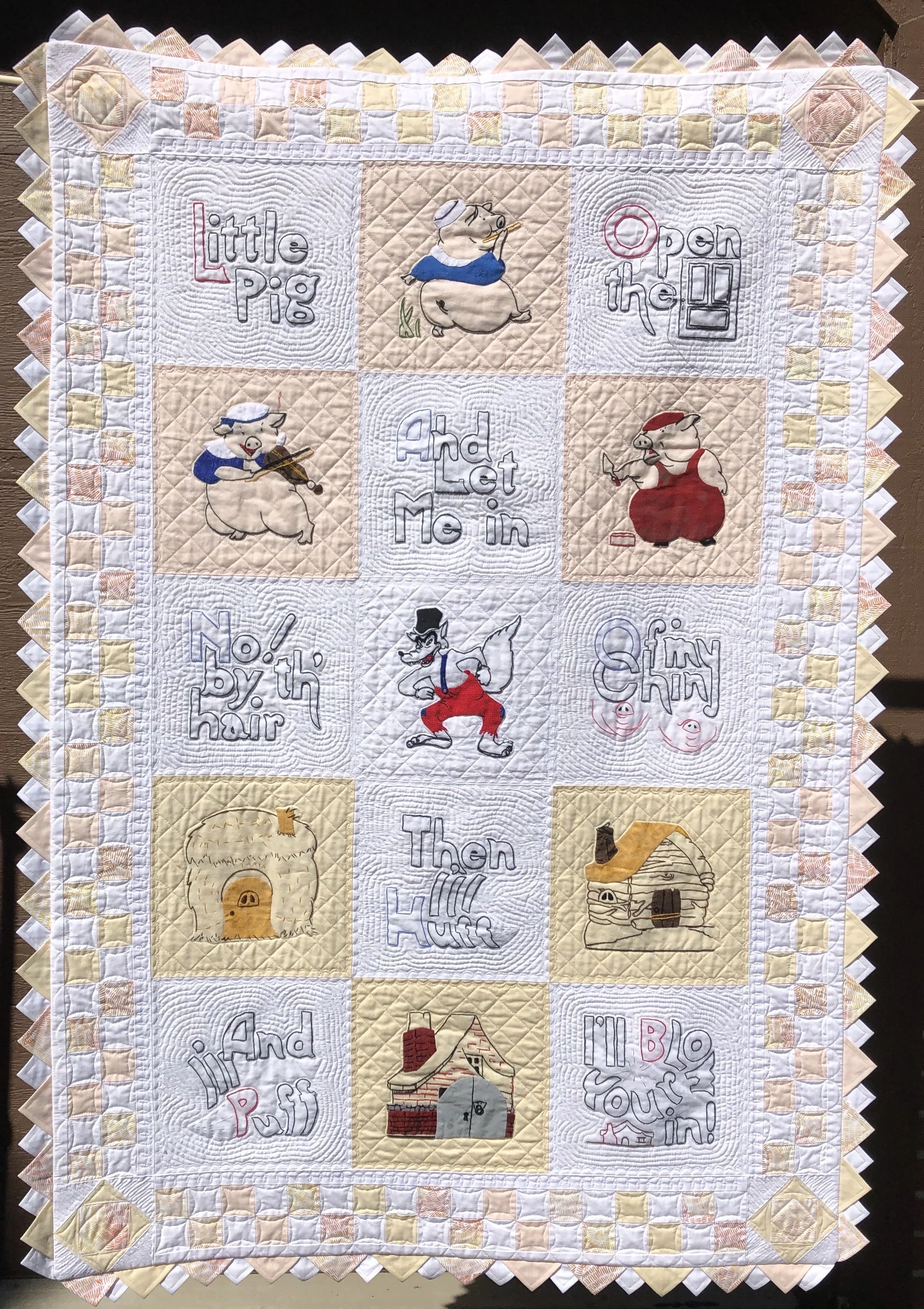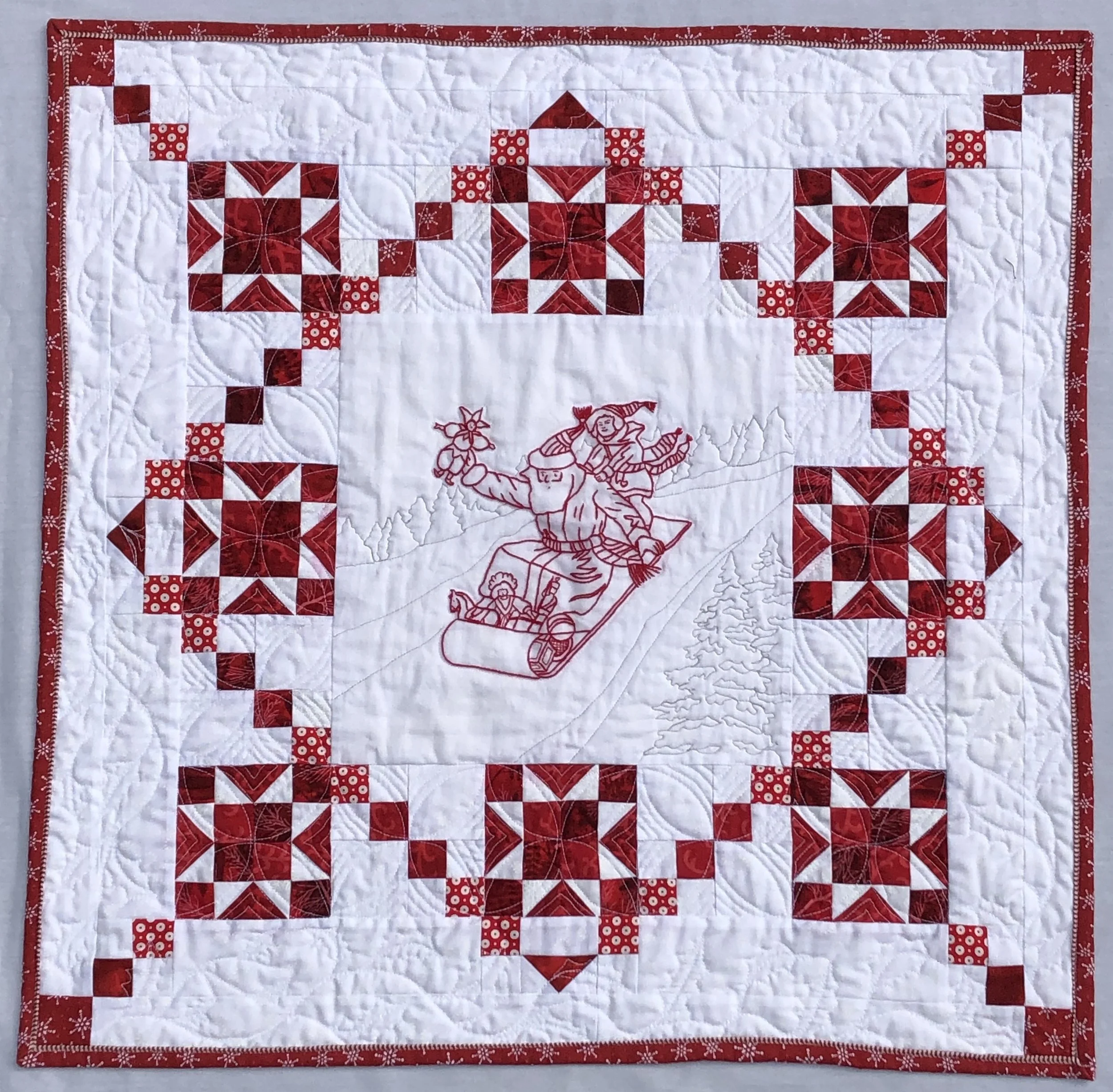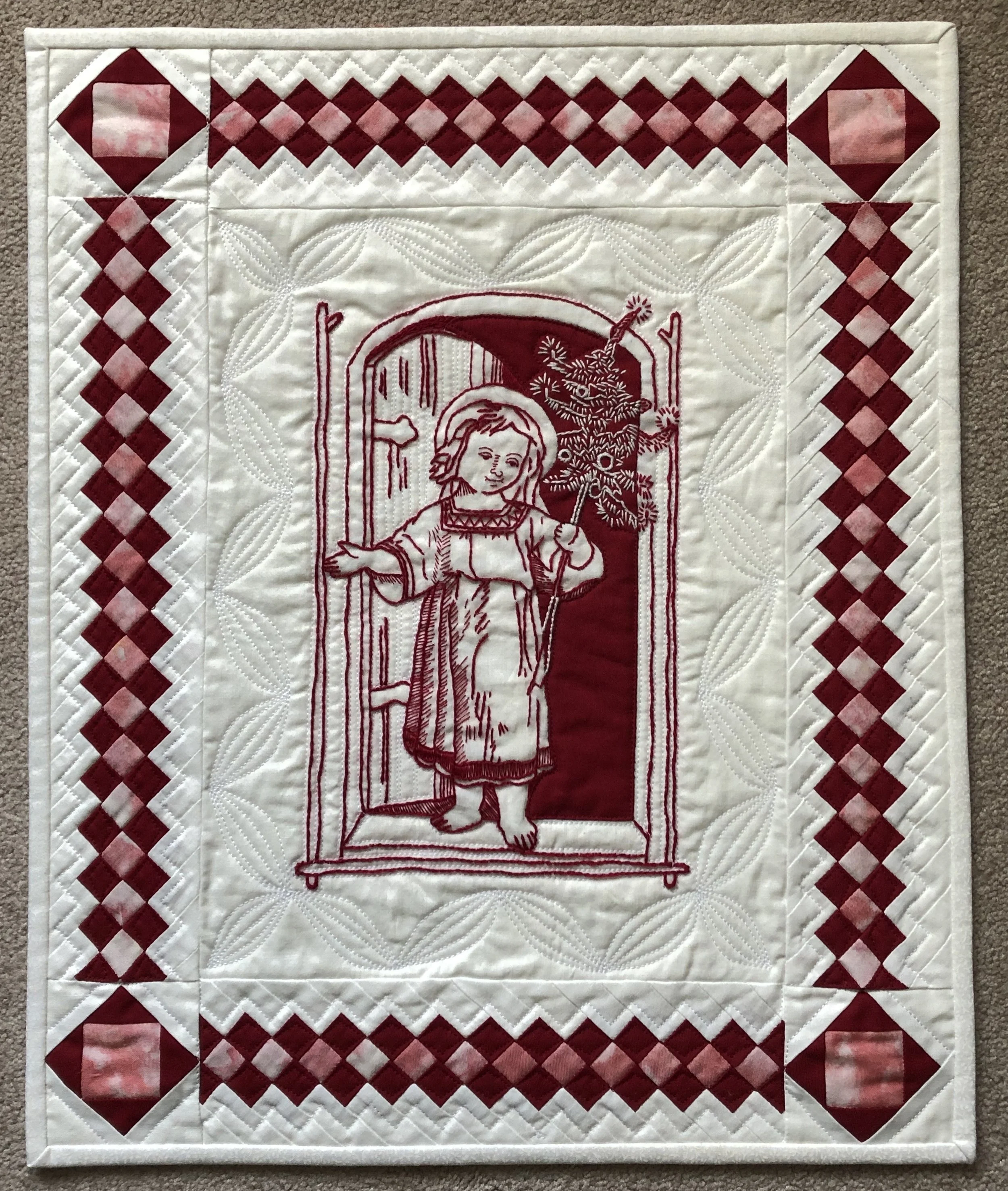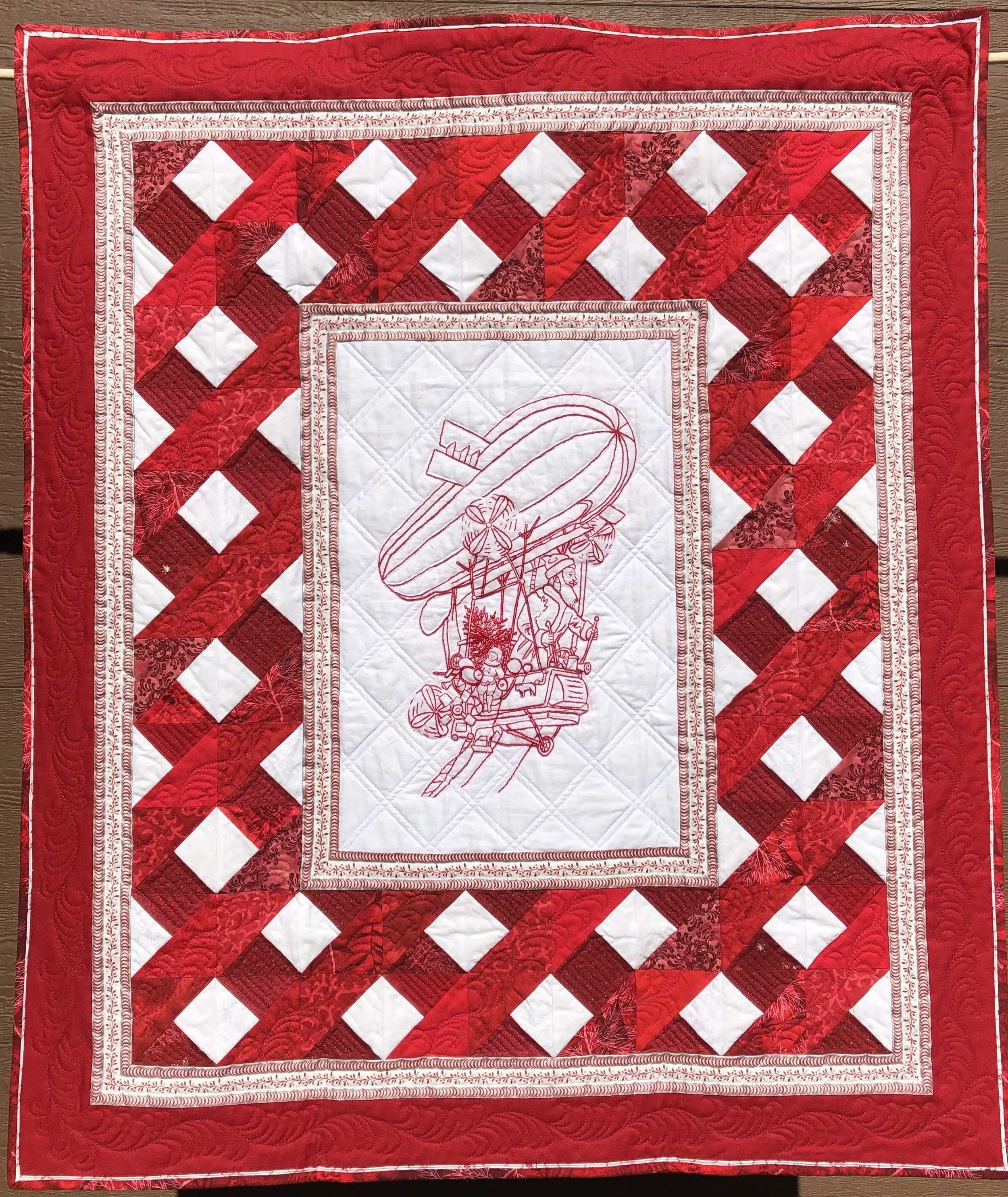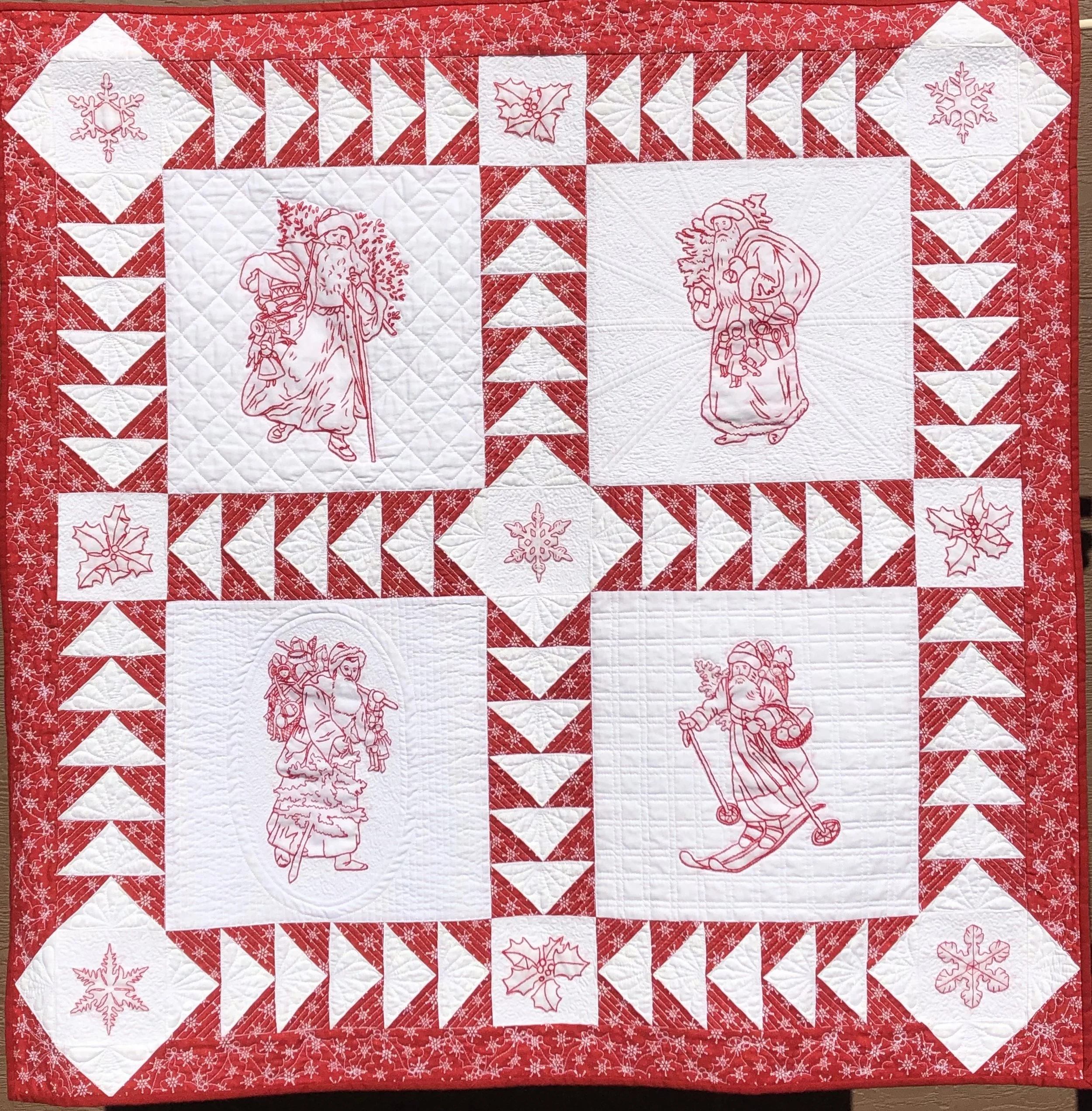 Redwork-style Embroidery Quilts
